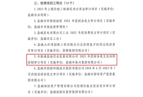 近期,為進(jìn)一步提高內(nèi)部審計(jì)工作質(zhì)量,充分發(fā)揮優(yōu)秀內(nèi)部審計(jì)項(xiàng)目的典型示范和引領(lǐng)作用,鹽城市審計(jì)局、鹽城市內(nèi)部審計(jì)協(xié)會(huì)在全市范圍內(nèi)組織開展優(yōu)秀內(nèi)部審計(jì)項(xiàng)目征集評(píng)選活動(dòng)。2023-12-04 -