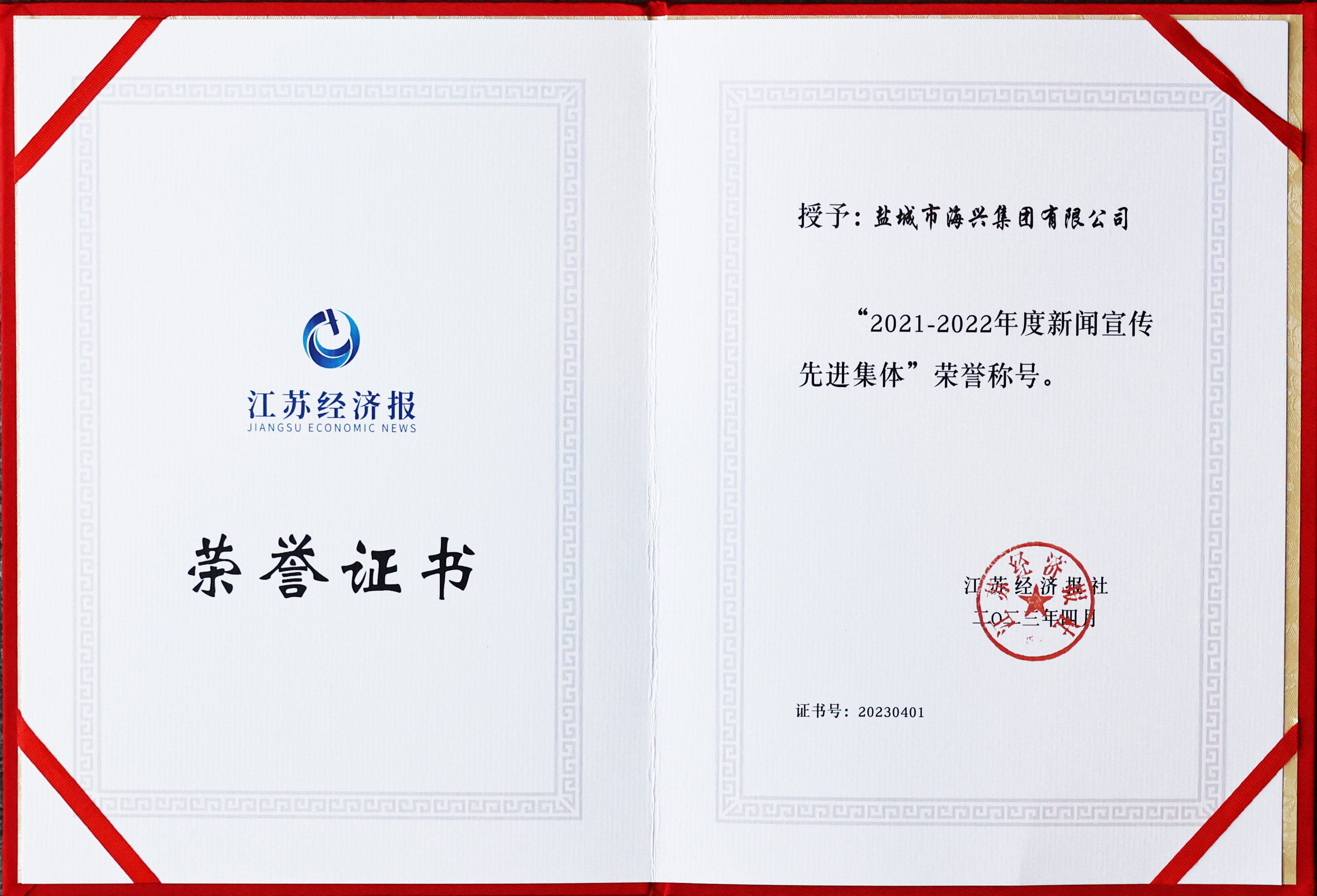近年來,海興集團(tuán)緊緊圍繞重點(diǎn)工作做好新聞宣傳,服務(wù)發(fā)展大局,傳遞海興聲音,弘揚(yáng)實(shí)干精神,新聞的傳播力、影響力得到顯著提升,全力營造出干事創(chuàng)業(yè)的濃厚輿論氛圍。近日,集團(tuán)被江蘇經(jīng)濟(jì)報(bào)授予“2021-2022年度新聞宣傳先進(jìn)集體”榮譽(yù)稱號。2023-04-20 -
